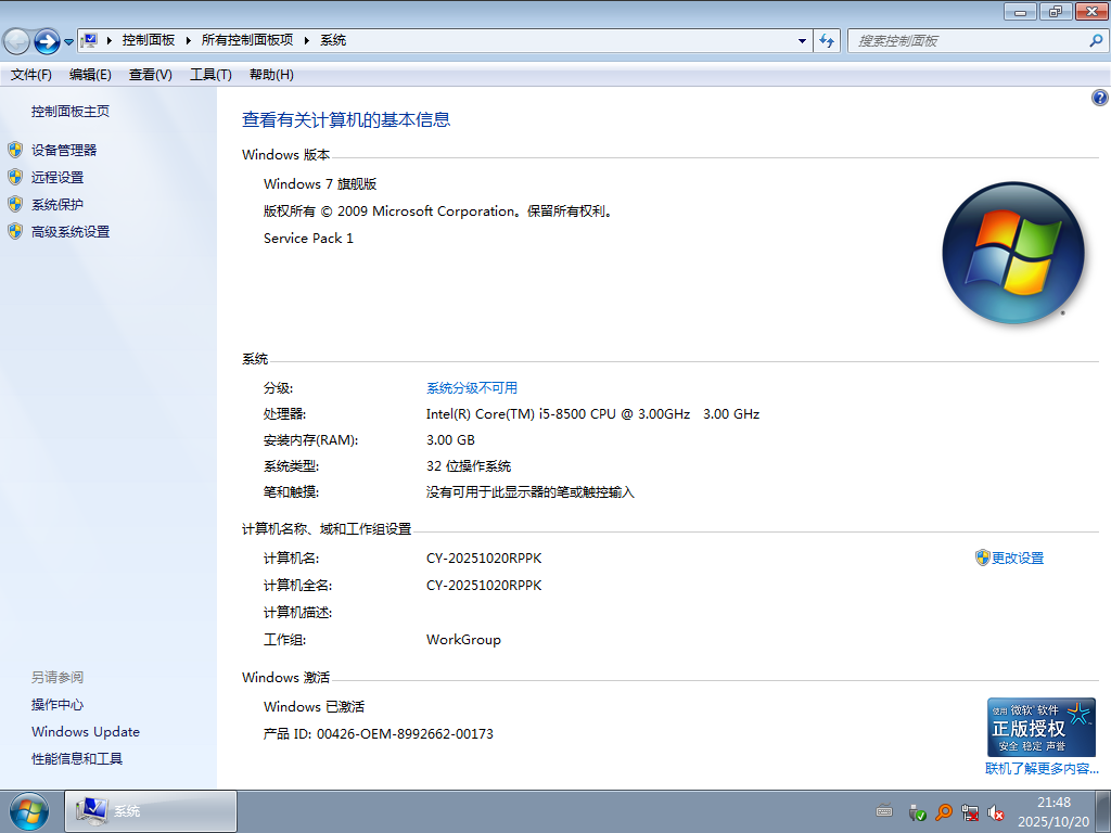 【系统】Windows 7 旗舰版 SP1 32位 2025.10(装机版)
