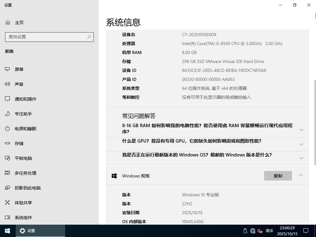 【系统】Windows 10 专业版 v22H2 64位 2025.10(纯净版)