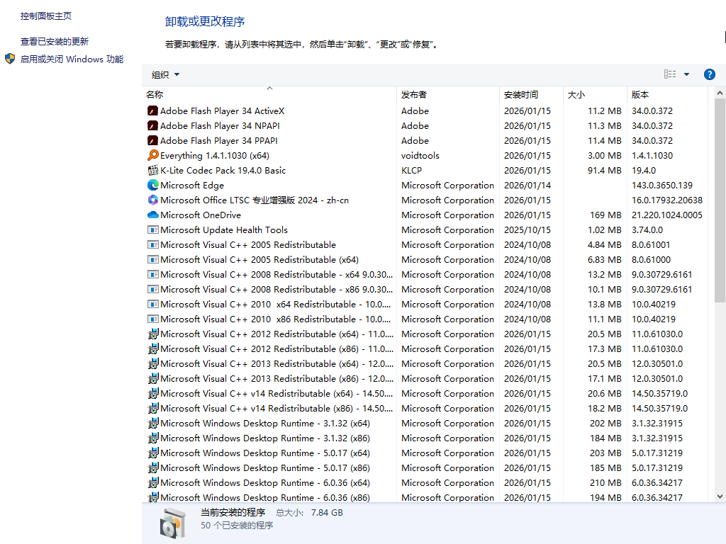 三、已装程序列表: