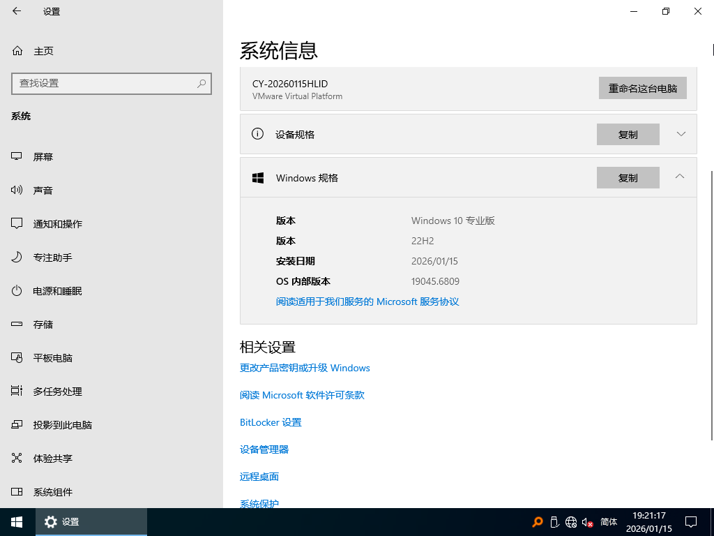 【系统】Windows 10 专业版 v22H2 64位 2026.1(装机版)