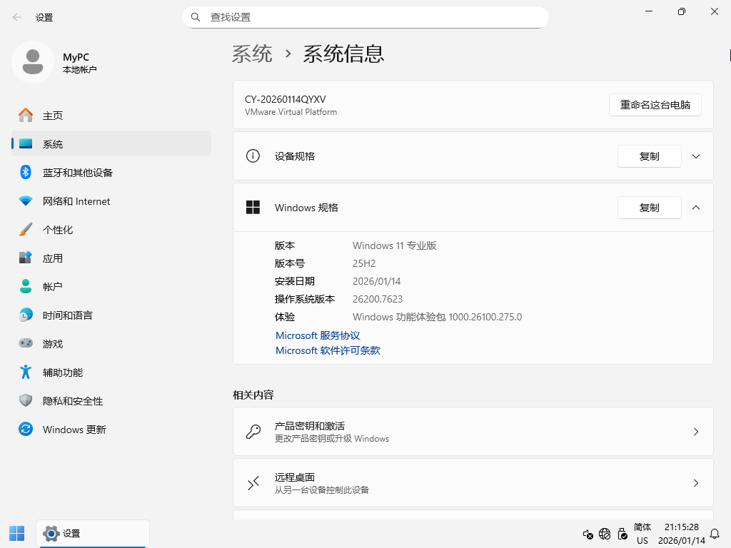 【系统】Windows 11 专业版 v25H2 64位 2026.1(纯净版)