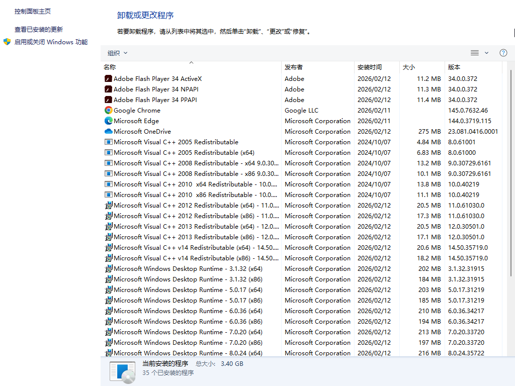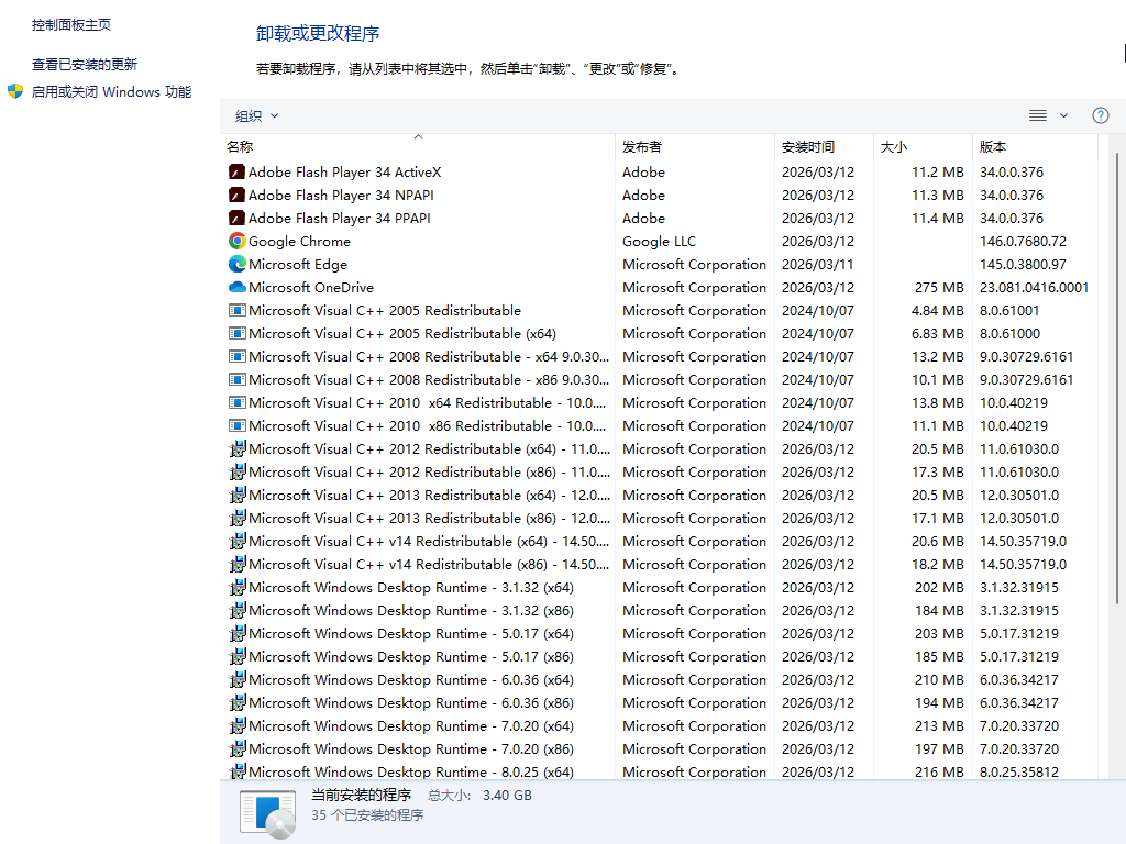 三、已装程序列表:
