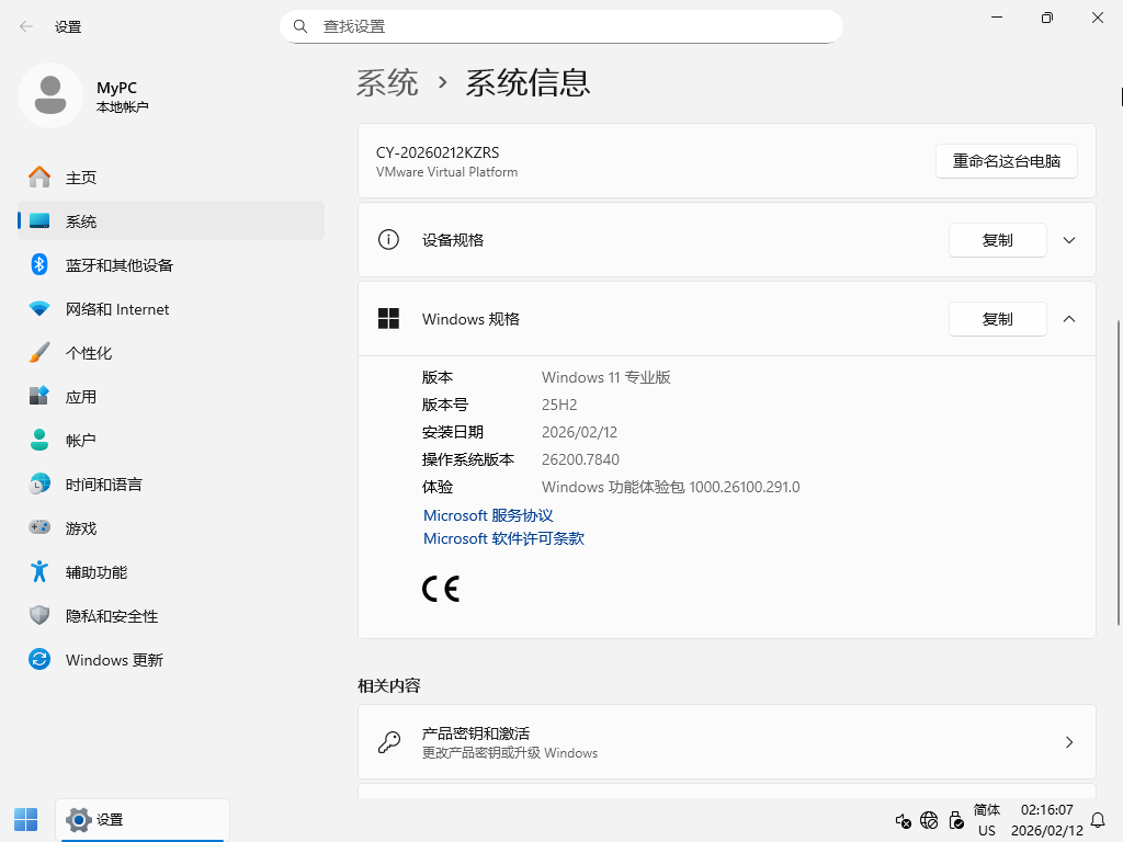 【系统】Windows 11 专业版 v25H2 64位 2026.2(纯净版)